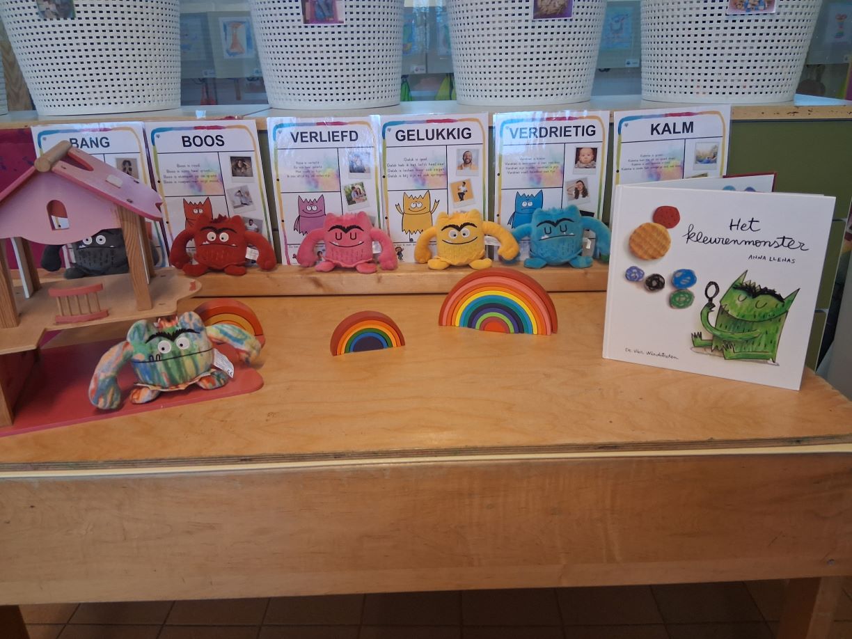 Het thema van de kleurenmonsters kwam aan bod. Daarin leerden we de gevoelens bang, boos, verdrietig, verliefd, rustig en verward kennen. De gevoelensmonsters leerden ons de gevoelens tonen met onze mimiek, maar ook horen met […]